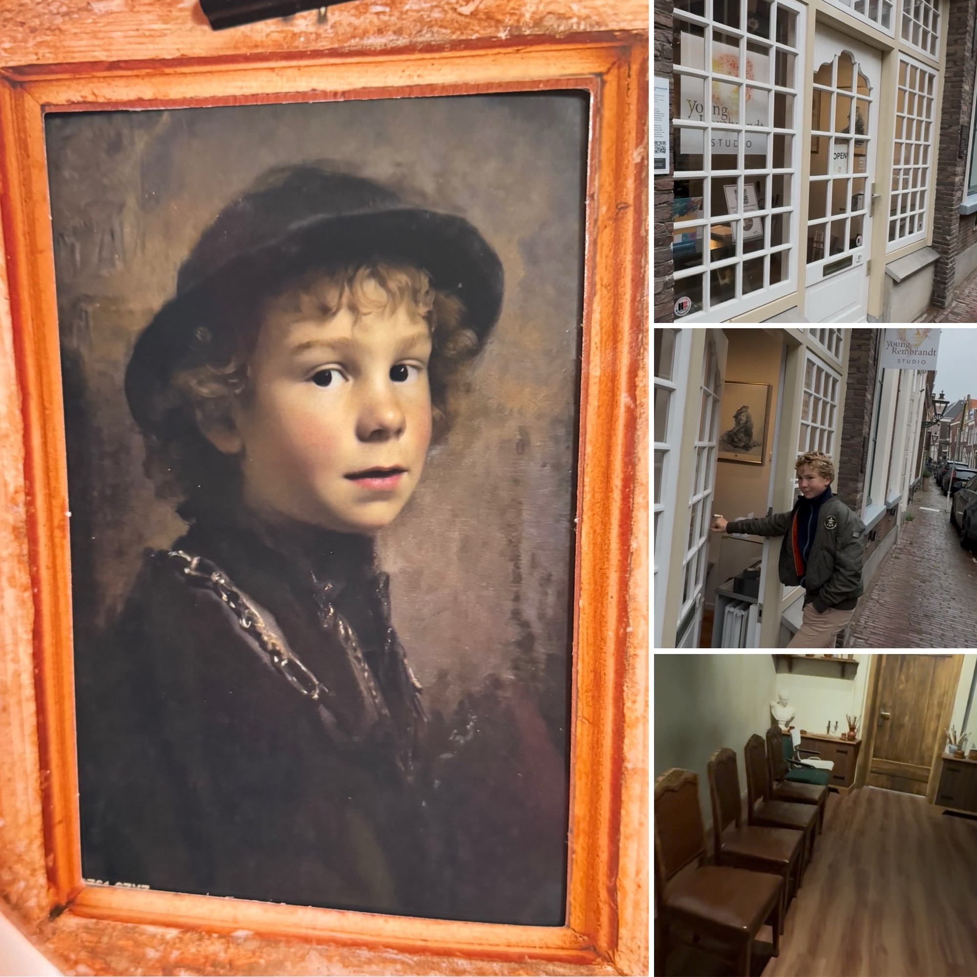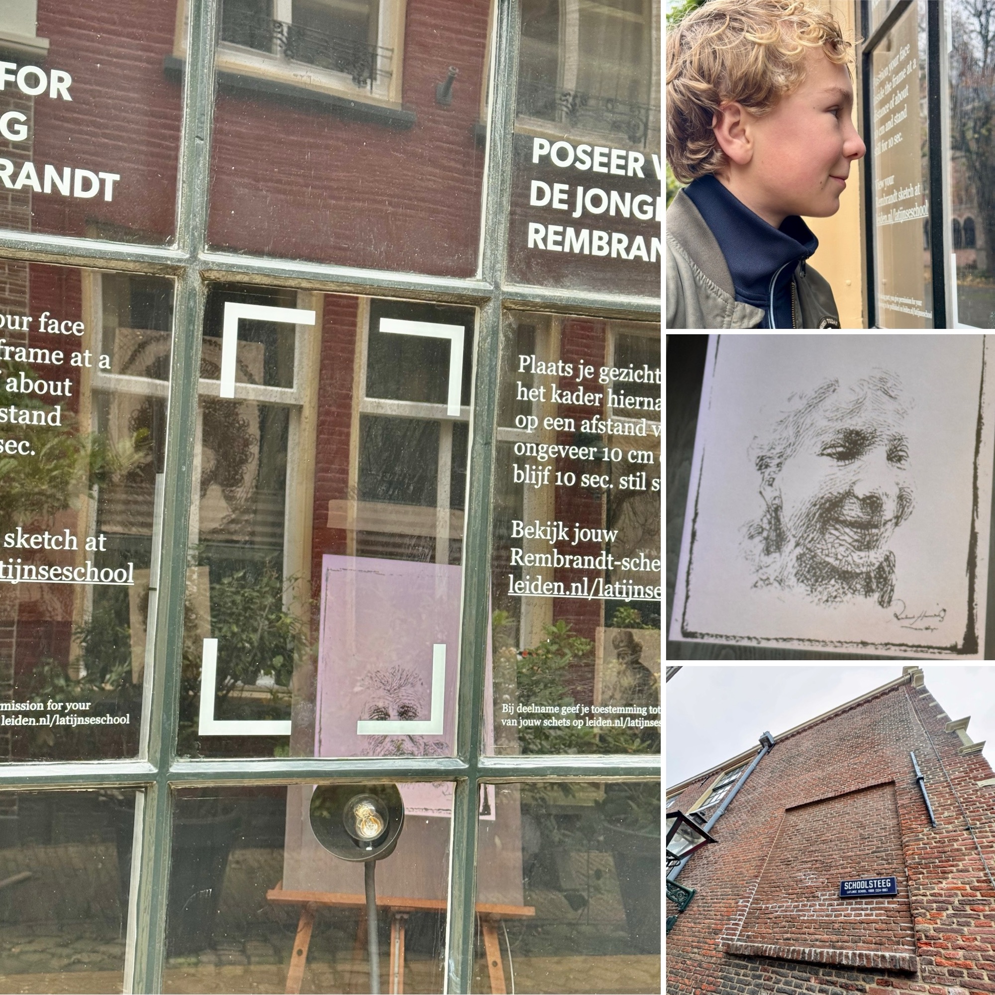 Onze ontdekkingsreis begon bij de Young Rembrandt Studio, waar we via een korte 3D-experience leerden hoe de jonge Rembrandt zijn eerste stappen zette in de kunst. Daarna wandelden we naar de Latijnse School, waar hij leerde tekenen, etsen en schilderen. Het was bijzonder om die plekken samen te bezoeken, alsof je door zijn jeugd liep.