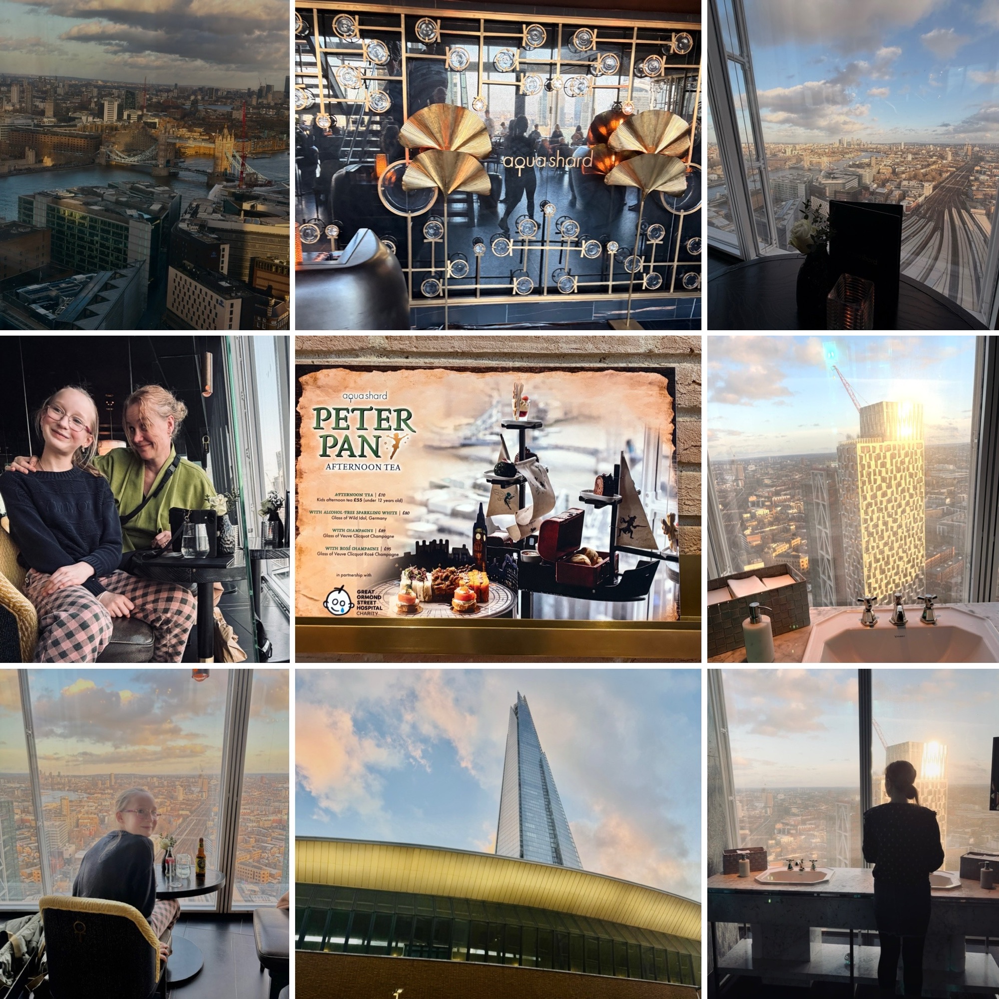 Aqua Shard ligt op de 31e verdieping van The Shard en biedt een van de mooiste uitzichten van Londen. Terwijl je thee drinkt, kijk je uit over de Theems, Tower Bridge en St Paul’s Cathedral. De Peter Pan afternoon tea is speels en creatief waarbij de gerechten geïnspireerd zijn op Neverland geïnspireerd op het verhaal van J. M. Barrie, allemaal geserveerd op de speciaal ontworpen Jolly Roger standaard, een knipoog naar het iconische schip van Kapitein Haak. Tegelijk blijft het niveau culinair hoog, met perfect gebakken scones en verfijnd gebak. Deze combinatie van uitzicht, luxe en fantasie maakt dit een van de meest bijzondere plekken van de stad. We waren er zelf voor een drankje en zagen dat de Afternoon tea hier zeer populair was.